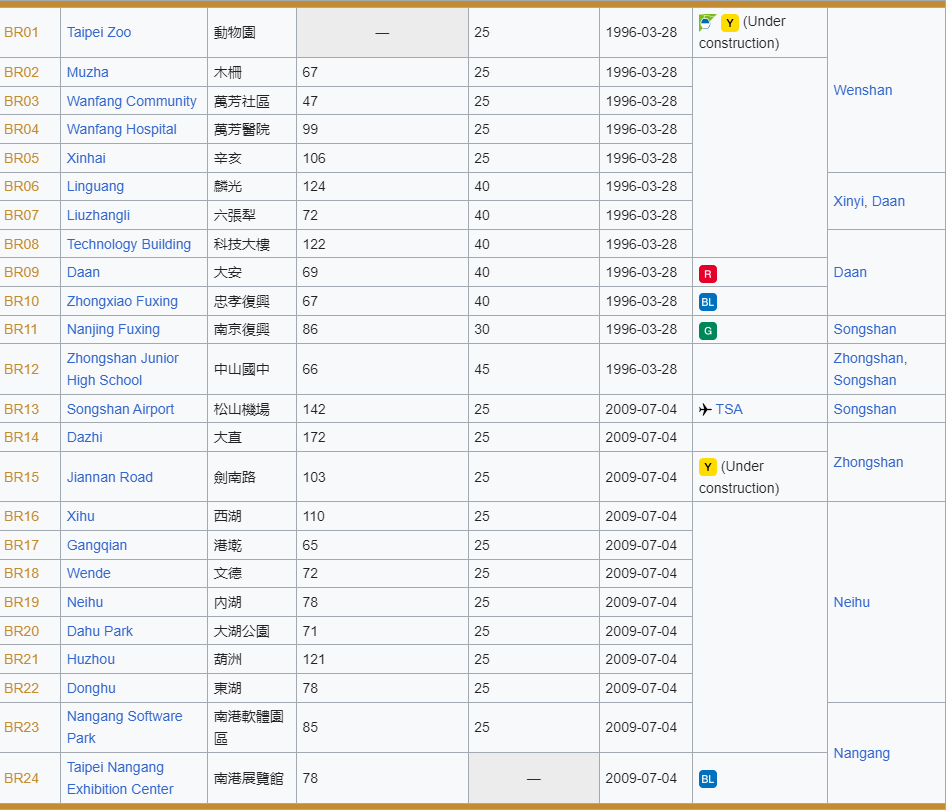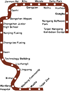 The Wenhu Line, also known as the Brown Line, is one of the lines of the Taipei Metro system in Taipei, Taiwan. It runs from Taipei Zoo Station in the south to Neihu Station in the north. It passes through several important areas and districts, including the Taipei Nangang Exhibition Center, Muzha, and Neihu District. The Wenhu Line serves a total of 24 stations along its route. Some of the notable stations include Taipei Zoo (connecting to the Maokong Gondola), Xiangshan (Elephant Mountain), Songshan (connecting to Songshan Airport), and Dazhi. The Wenhu Line intersects with other lines of the Taipei Metro system at various stations, allowing passengers to transfer easily between different lines. For example, passengers can transfer to the Tamsui-Xinyi (Red) Line at the Daan station, Zhongxiao Fuxing for the Bannan (Blue) Line, Nanjing Fuxing for the Songshan (Green) Line and Jiannan Road for the Circle (Yellow) line. The Wenhu Line serves as a crucial transportation artery, connecting the southern parts of Taipei City with the northeastern area, including the densely populated Neihu District. It provides commuters with a convenient and efficient means of transportation, reducing travel times and alleviating congestion on the roads. Overall, the Wenhu Line plays a crucial role in the Taipei Metro system, providing residents and visitors with a convenient, reliable, and efficient mode of transportation between various parts of Taipei City and New Taipei City. The Maokong Gondola is a gondola lift transportation system which operates between the Taipei zoo and Maokong; although this is not a directly a part of the MRT system, it is shown on the MRT map, and you can access the Maokong Gondola easily, as it has a station at the Taipei Zoo, which is a stop on the Wenhu line.