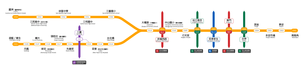 Another popular line in Taipei is the Zhonghe-Xinlu Line, also known as the Orange line. The Zhonghe-Xinlu Line runs from Huilong Station in Zhonghe District to Fu Jen University Station in Xinzhuang District. It covers a significant area in New Taipei City, passing through districts like Yonghe and Xindian. The Zhonghe-Xinlu Line serves a total of 21 stations along its route. Some notable stations include Nanshijiao (interchange station with the Tamsui-Xinyi Line), Yongan Market, Jingan, Dingxi, Guting (interchange station with the Songshan-Xindian Line), and Fu Jen University. As mentioned, the Zhonghe-Xinlu Line intersects with other lines of the Taipei Metro system at various stations, allowing passengers to transfer easily between different lines. For instance, passengers can transfer to the Tamsui-Xinyi (Red) Line at the Mingquan W. Rd and Dongmen stations as well as jingan for the Circle (Yellow) line. The Zhonghe-Xinlu Line serves as a crucial transportation link connecting various residential, commercial, and educational areas in New Taipei City. It provides commuters with access to key destinations, including universities, markets, and shopping districts.