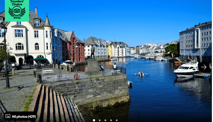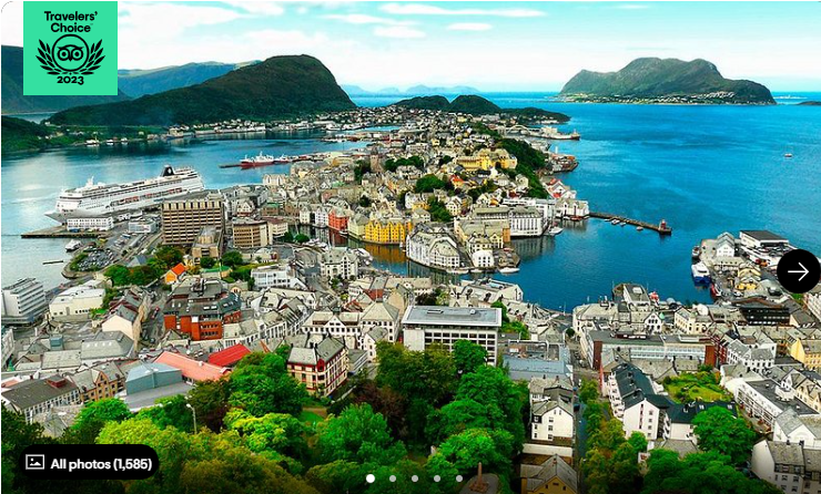 Ålesund is a picturesque coastal town in Norway known for its unique Art Nouveau architecture. Situated on the west coast of Norway, it’s surrounded by fjords and mountains, making it a popular destination for outdoor enthusiasts and photographers alike. The town itself is famous for its colorful buildings, which were rebuilt in the Art Nouveau style following a devastating fire in 1904. Visitors can explore the charming streets, visit museums, enjoy fresh seafood, and take boat trips to nearby islands. Ålesund is also a gateway to exploring the stunning natural beauty of the Norwegian fjords. Hike or drive up to the top of Aksla Mountain for panoramic views of Ålesund and the surrounding islands. There’s a staircase with over 400 steps, or you can take the car for a more leisurely journey. Experience the stunning beauty of the Norwegian fjords with a cruise departing from Ålesund. Many tours offer scenic routes through the fjords, passing by waterfalls, glaciers, and picturesque villages. Ålesund is surrounded by nature, offering ample opportunities for outdoor activities such as hiking, kayaking, fishing, and birdwatching. Explore nearby islands or venture into the mountains for a day of adventure.