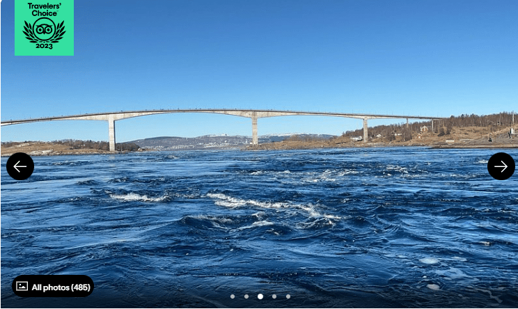 Besides Tromso often referred to as the “Gateway to the Artic”, Bode, Kirkenes and Hammerfest are three other popular cities in Norway that are part of the Artic Circle. These cities and towns, along with smaller settlements and villages, contribute to the unique cultural and environmental tapestry of Norway’s Arctic Circle region. Witness one of the world’s strongest tidal currents at Saltstraumen, just outside Bodø. You can take a guided boat tour to experience the swirling waters up close or observe from the pedestrian bridge for a breathtaking view.
