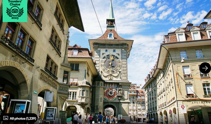 the Old town is characterized by its cobblestone streets, medieval buildings, and arcaded walkways. Old town is highlighted by the Zytglogge, a 13th-century clock tower with an astronomical clock and moving figures, Federal Palace