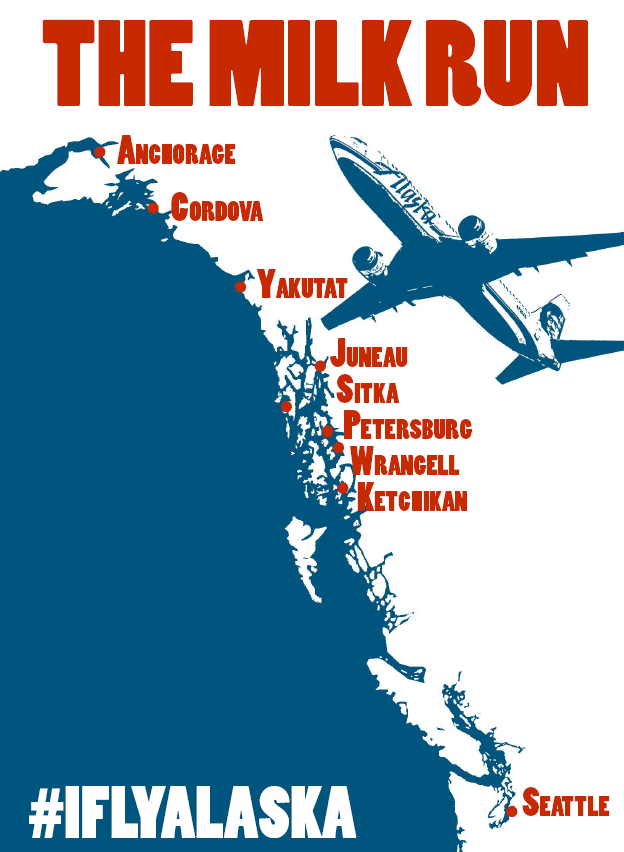 Alaska Airlines Milk Run is more commonly referred to as “The Milk Run,” but could just as easily be known as “The Salmon Run” or “The Grocery Run.” If you’re looking out the oval window of a 737, you might call it the “Peak-and-Glacier Run.” The Milk Run refers to the daily circuit of Alaska Airlines flights that hop between towns in Southeast Alaska, serving as a lifeline for the communities that aren’t always connected by roads to the outside world. In some ways, the Milk Run flights reflect the airline’s heritage in the state where it earned its name, and the resilient bush pilots in the 1930s who transported mail, medicine and furs to all kinds of places through most kinds of weather. These days, it helps that Alaska Airlines pioneered Required Navigation Performance procedures that allow for reliable service to some of the most weather-socked and terrain-challenged airports in Alaska. That reliability makes a difference if you’re waiting for supplies or heading to a hospital to have a baby.