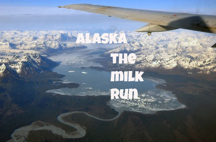 The Milk Run flights have been living up to their nickname for many years, with Alaska Airlines delivering milk and other vital supplies to the towns it serves. Many towns in Alaska are uniquely reliant on air service, due to the lack of roads. In aviation, the term “milk run” refers to a scheduled flight with many stops, or a routine and uneventful journey. In logistics, a milk run refers to a round trip that facilitates both distribution and collection, similar to the way a milkman delivers full bottles and picks up empties around a neighborhood. It also refers to the dairy industry practice of picking up mixed loads from different suppliers – when one tanker truck collects milk from several farmers for delivery to a central processor. For these Alaska Airlines flights, all the definitions seem to fit. The name has stuck.