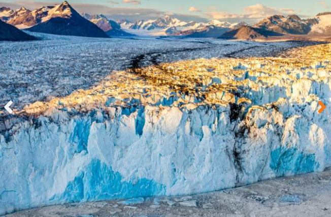 Hubbard Glacier is a unique glacier for a couple reasons. Unlike many glaciers that are retreating due to climate change, Hubbard Glacier is actually advancing . It’s the longest tidewater glacier in North America, stretching 76 miles long and 6 miles wide at its terminus. Located in Wrangell-St. Elias National Park and Preserve in eastern Alaska and Kluane National Park and Reserve in Yukon, Canada, Hubbard Glacier is named after Gardiner Hubbard, the first president of the National Geographic Society. Even at 400 years old, Hubbard Glacier manages to stay active. As many glaciers thin and retreat, Hubbard Glacier is advancing at a rate so fast it’s nicknamed, “the Galloping Glacier.” Hubbard’s massive ice chunks regularly calve off and thunder into the sea. It also caused the largest glacial lake outburst flood in recent history.