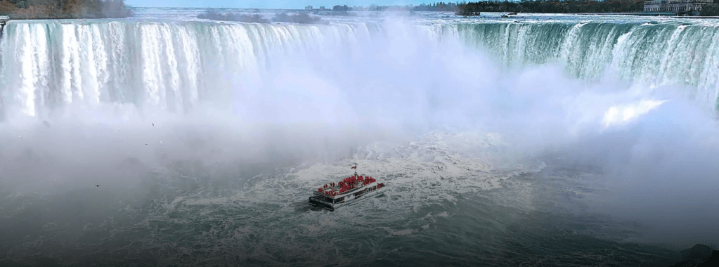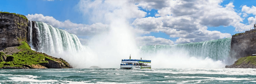 Get right up close to the base of the Horseshoe Falls on this iconic boat tour. Prepare to get soaked! Looking for a fun way to “explore the roar?” The Maid of the Mist boat tour in Niagara Falls, NY has been described by generations of visitors as one of the highlights of their trip. A favorite Niagara Falls State Park attraction for more than 150 years, the Maid of the Mist journey begins at the Observation Tower, where guests are given a souvenir rain poncho to wear and board the double-deck Maid of the Mist tour boat. From there, the boat ferries past the base of the American Falls, and onto the basin of Horseshoe Falls–the dramatic passage leading you through the roiling waterfall whitewater and massive rock formations. The Maid of the Mist returns guests to shore with newfound appreciation of the power and grandeur of Niagara Falls.