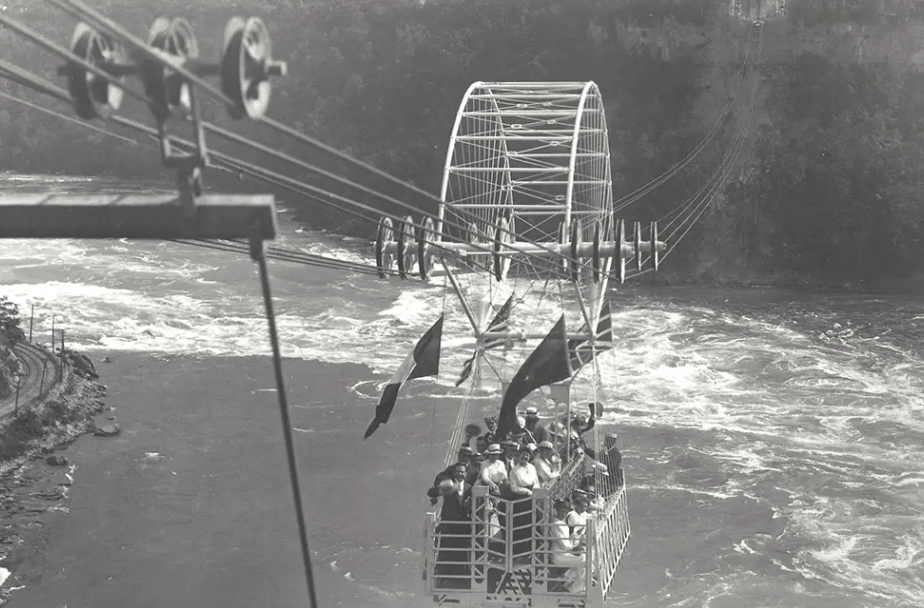 For over 100 years, the historic Whirlpool Aero Car has offered riders spectacular views of the swirling Niagara Whirlpool and the Class 6 whitewater rapids of the Niagara River. The attraction began operations on August 8, 1916, taking it’s maiden voyage just after 3pm witnessed by a hundreds of spectators gathered to see the amazing engineering feat in action for the first time. The first passengers included Spanish dignitaries, and the car was adorned with the flags of four nations, Canada, Spain, the United States and France. Shortly after taking ownership of the attraction, Niagara Parks constructed the current visitor centre adjacent to it, with guest amenities including a retail store and food service.