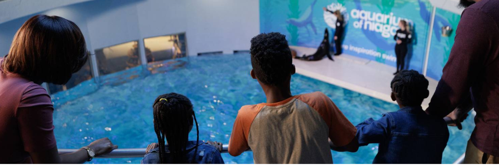 Discover the wonders of the aquatic world at this aquarium, located just steps from Niagara Falls State Park. Go on an aquatic adventure at Niagara’s other “water wonder,” the Aquarium of Niagara. The Aquarium is home to more than 120 aquatic species, including playful penguins, rescued seals and sea lions, mesmerizing jellyfish, colorful fish and invertebrates, and more. The Aquarium’s educational exhibits feature more than 1,500 animals in diverse ecosystems. Roll up your sleeves and enjoy hands-on animal interactions with sharks and stingrays at the Aquarium’s interactive touch pool. Learn about the threats challenging animals in their natural habitats and leave equipped with tangible ways to positively impact wildlife. Interact with the Aquarium’s knowledgeable staff and charismatic animal ambassadors through animal feedings, educational presentations, and expert talks. A full schedule of programming is included with general admission. Located less than a mile from the Falls, the Aquarium is accessible by the in-park Niagara Scenic Trolley (seasonal) or by taking a leisurely stroll along park trails.