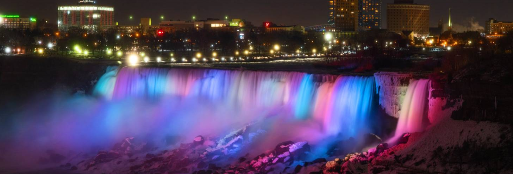 Hundreds of LED lights are housed in three locations across the Niagara Gorge in Niagara Falls, Ontario. Together, these lights work to create a breathtaking view not to be missed, and are illuminated every night of the year beginning at dusk. Throughout the year, Niagara Falls is illuminated for holidays and significant occasions, as determined by the Niagara Falls Illumination Board (NFIB). The falls are also lit in custom colors for short durations to mark significant dates in support of charitable causes. A schedule of upcoming special illuminations is shown below. In 2016, almost 20 years since the last major investment in falls lighting, the existing Xenon lights were replaced with new, energy-efficient LED lighting technology. These new lights provide more than twice the previous lighting levels, programmable lighting, and a wider spectrum of color. The new lights also fill gaps to provide a more consistent lighting effect. The Falls will illuminate in 2024 from 8:30 PM – 2:00 AM.
