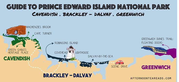 Cavendish: Famous for its stunning beaches, Anne of Green Gables attractions, and the nearby Prince Edward Island National Park.