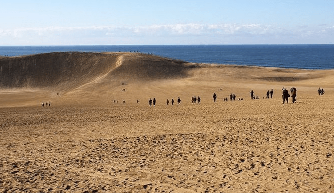 The Tottori Sand Dunes are large sand dunes located just outside the city center and are Tottori’s most famous tourist attraction. They span roughly 16 kilometers of coast along of the Sea of Japan and are up to two kilometers wide and 50 meters high. They are part of the Sanin Kaigan National Park. The sand dunes were created over thousands of years, as sand from the nearby Sendaigawa River was washed out to sea and eventually redeposited along the coast by the ocean’s currents. Today, the movement of the tides and the coastal winds continuously shape the sand dunes and provide an ever changing landscape. The main sightseeing area spans a half kilometer swath of sand between the visitor center and the sea. Many of the largest sand dunes are found here, and their tops provide visitors with beautiful views out over the coast. From here you can also explore the vast expanses of sand which lead off for several kilometers in almost every direction.