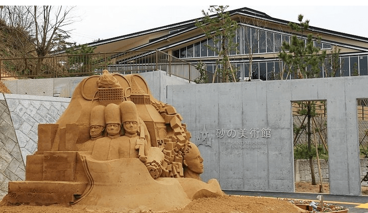 There are also a number of other attractions to enjoy around the dunes. Camel and horse drawn cart rides travel the dunes, while the more adventurous might try paragliding or sandboarding (a variation of snowboarding) which are offered by local companies. Views over the dunes can be enjoyed from the observation deck of the Sakyu Center, which is connected with the sand dunes by a chair lift. A short walk away from the dunes stands The Sand Museum, a unique museum that displays large sand sculptures by artists from around the world. In the past, sand exhibitions were held outdoors and in temporary structures, but in 2012 the sand museum moved into its own permanent building. Exhibitions usually change annually and last from mid April to early January of the following year. Every exhibition has its theme, typically a country or region. In 2024, the theme of the exhibition is France. The exhibition lasts from April 19, 2024 to January 5, 2025.