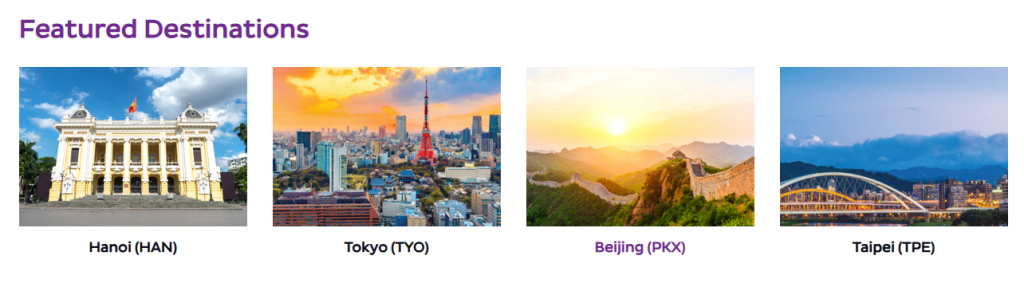 Covers popular Asian cities, including Tokyo (Haneda/Narita), Osaka, Seoul, Taipei, and Bangkok
