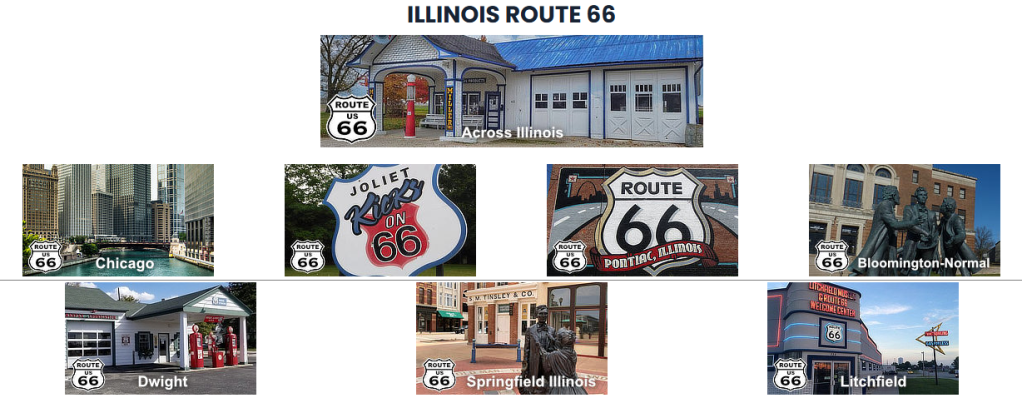 The beginning point for a Route 66 road trip could be either Chicago or Los Angeles, depending on the direction of the trip. Most travelers seem to start their journey on Route 66 in Chicago, and head westbound, the direction taken by those leaving the Dust Bowl and those seeking a new life in the West. That is the direction we take on this website. Illinois was the first of the eight states through which Route 66 passed to have its segment of U.S. 66 paved, at a time when much of the route across the country was still a gravel or dirt road. Illinois Route 66 took over Illinois State Highway 4, a pre-existing, fully paved two-lane road between Chicago and St. Louis.