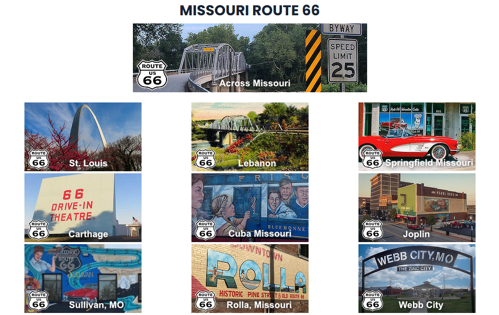 Missouri’s stretch of Route 66 is rich with history, quirky attractions, and scenic beauty. The Gateway Arch in St. Louis is a towering symbol of westward expansion, offering stunning views of the city and Mississippi River.