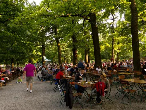 - Hirschgarten: With space for 8,000 guests and deer grazing nearby, it feels like a village festival that never ends. Locals and families mingle under chestnut trees, kids run around, and the clink of Maßkrüge echoes through the leafy park. It’s lively but never rushed—just pure Bavarian ease.