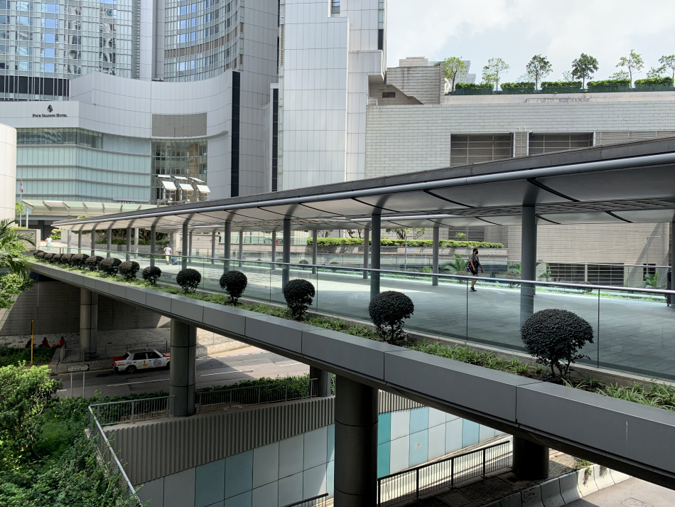 and encourages non-motorized movement, which is vital in a city where space is at a premium. Hong Kong’s weather can be intense—hot, humid, and rainy. Elevated walkways provide covered,