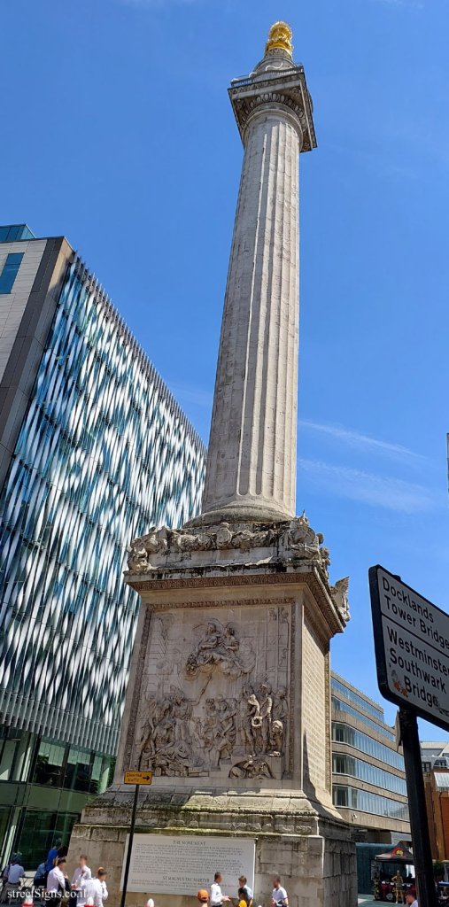 The height of the Monument equals the distance to the bakery where the fire began — a literal architectural diagram.
