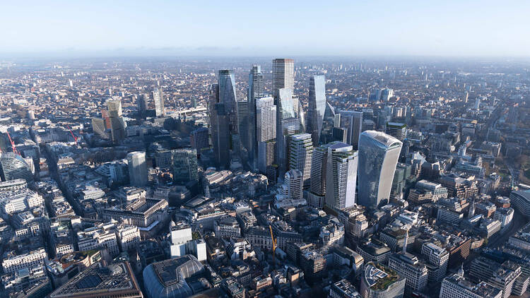 - The looming presence of the Lloyd’s Building and Cheesegrater overhead.