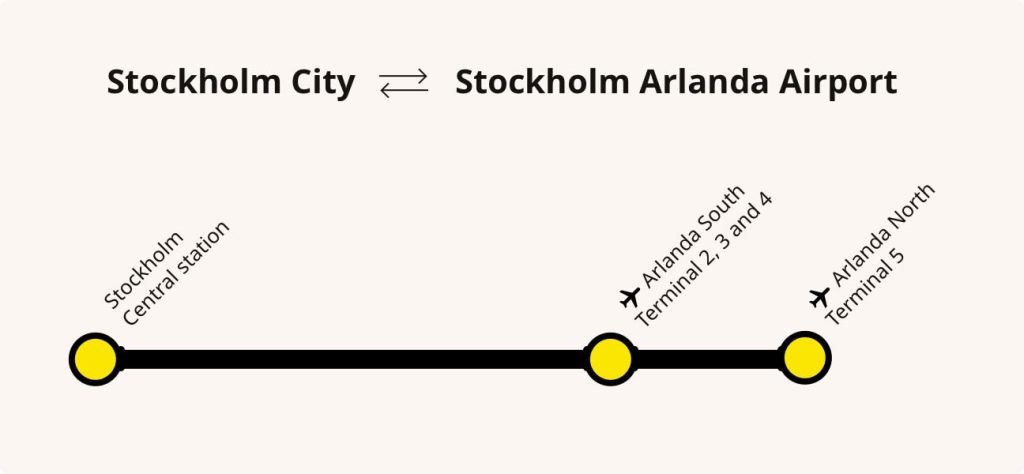 Pendeltåg trains serve Arlanda Central Station, located between Terminals 4 and 5. It’s Cheaper than Arlanda Express but involves a longer walk to terminals (15–20 minutes depending on airline) .