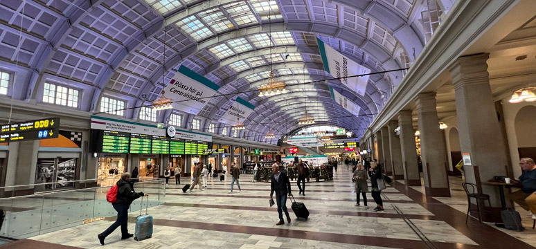 You step off the train directly into Stockholm’s main rail hub—ideal for hotels in Norrmalm, Gamla Stan, and Södermalm.
