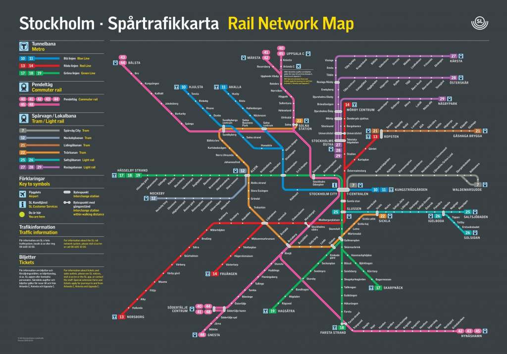Operated by SL, it has an Daily ridership of about ~1.26 million. Central hub: T‑Centralen, where all lines meet and connect to commuter trains and Stockholm Central Station.
