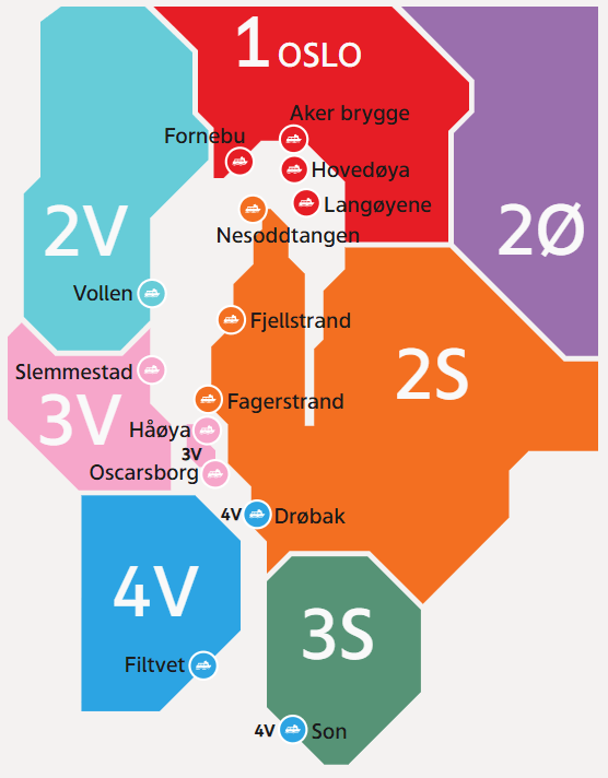These departures leave from Aker Brygge (near City Hall). Since they are part of the Ruter network, your standard Metro or Tram ticket is valid here.