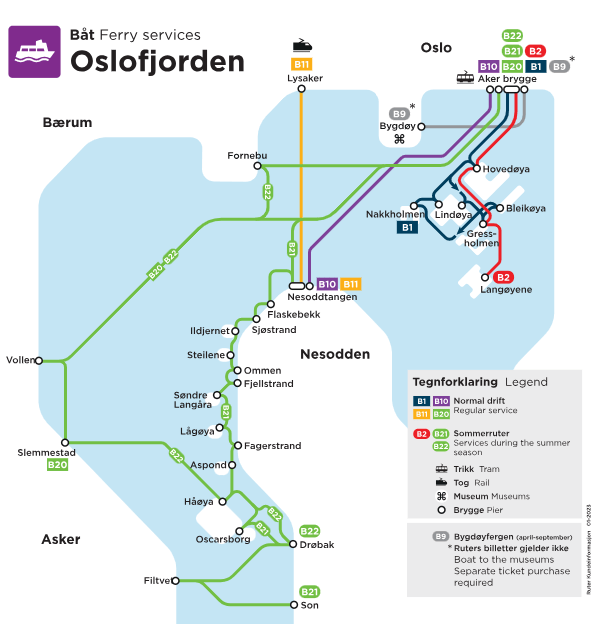 | Ruter Public Ferries | B1, B2 (Islands), B10 (Nesodden) | Commuting and island hopping. Uses standard city tickets. |