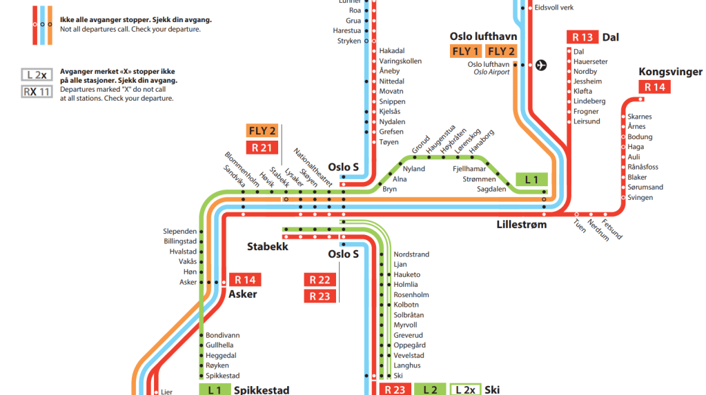R12, R13, R14: Faster “Regional” trains that stop at fewer stations but are still accessible with a Ruter ticket within the valid zones.