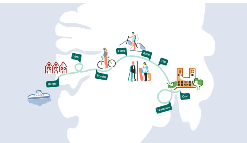 Urban to Alpine: Starts in urban Oslo, moves through lush forested valleys and lakes, and then enters a desolate alpine tundra.