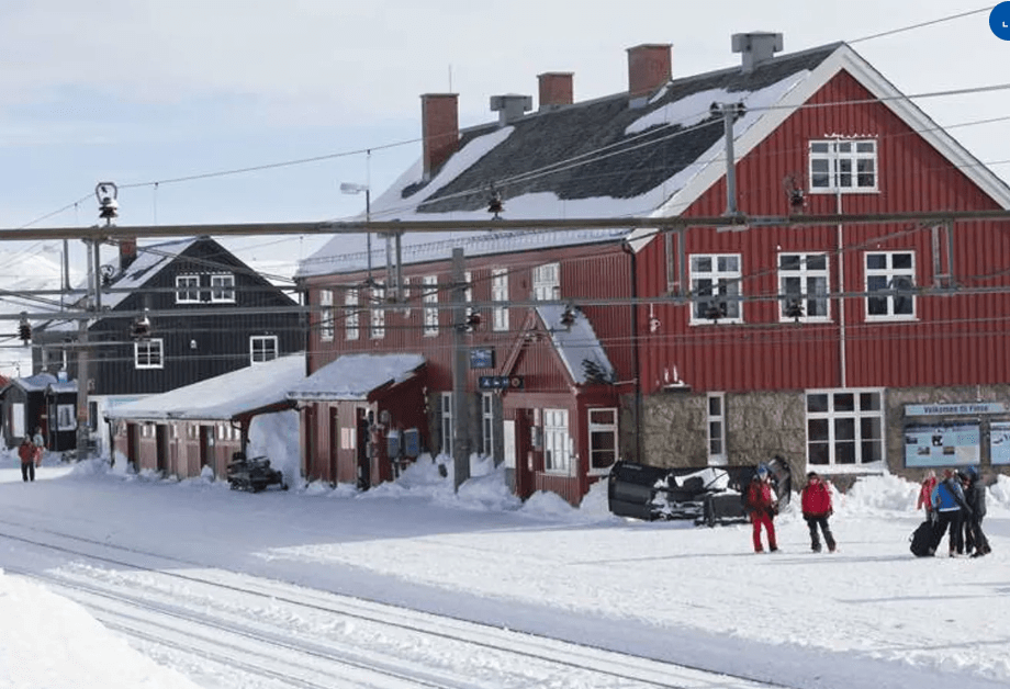 Finse- 1222m- The highest station in Norway; it is roadless and only accessible by train, foot, or ski.